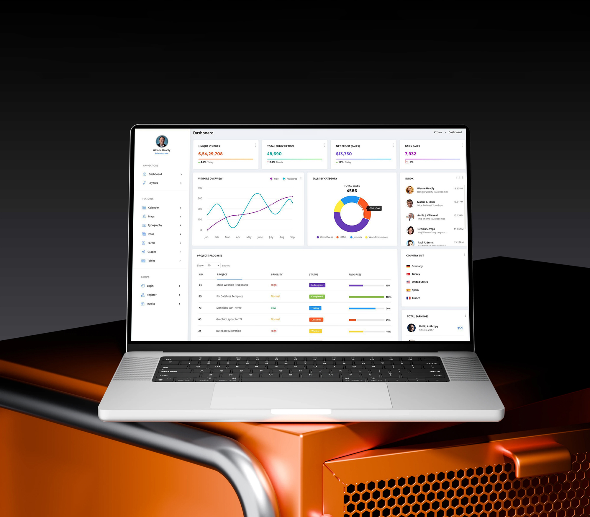 We craft responsive, fast-loading, and visually stunning user interfaces using modern frameworks like React, Vue.js, Next.js, HTML5, CSS3, Tailwind CSS, and Bootstrap.