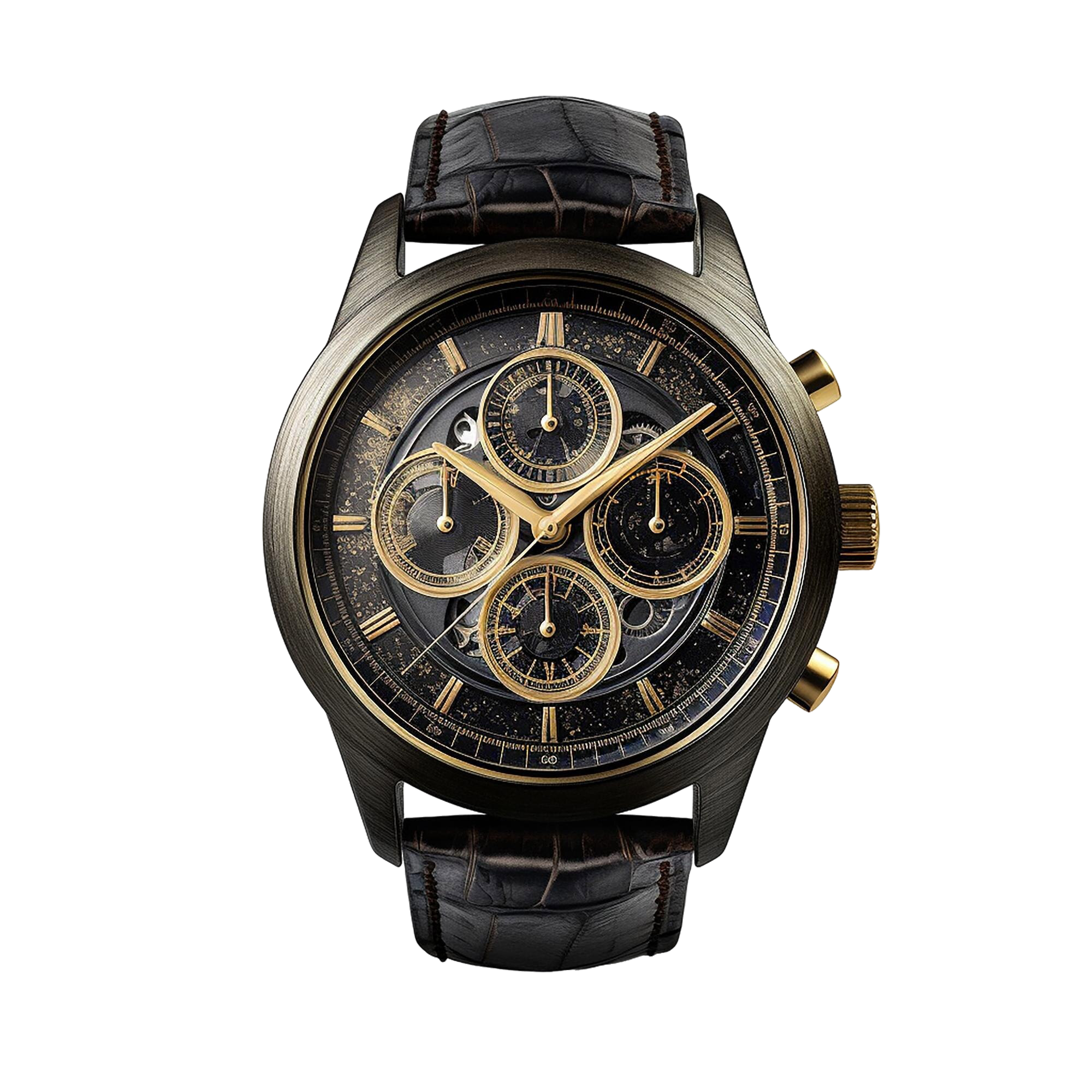 An elegant men’s wrist watch with a black leather strap, perfect for daily and formal wear.